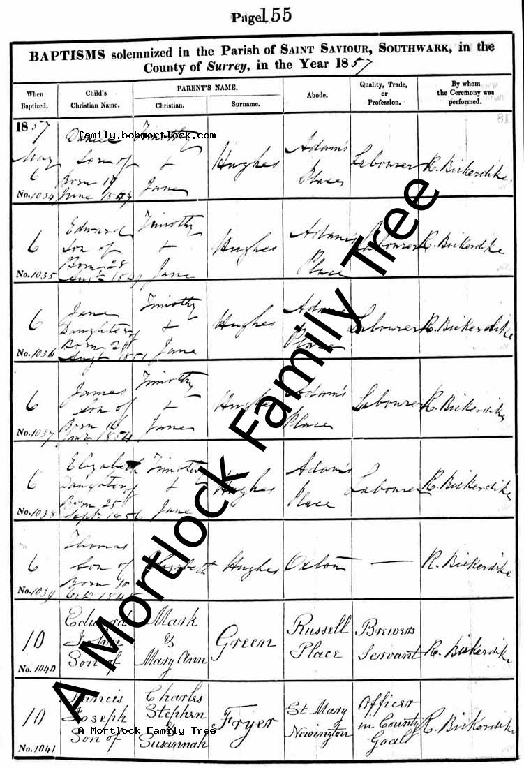 | Baptism | 6 May 1857 (Age 7) Southwark, S London, England Address: St Saviour |