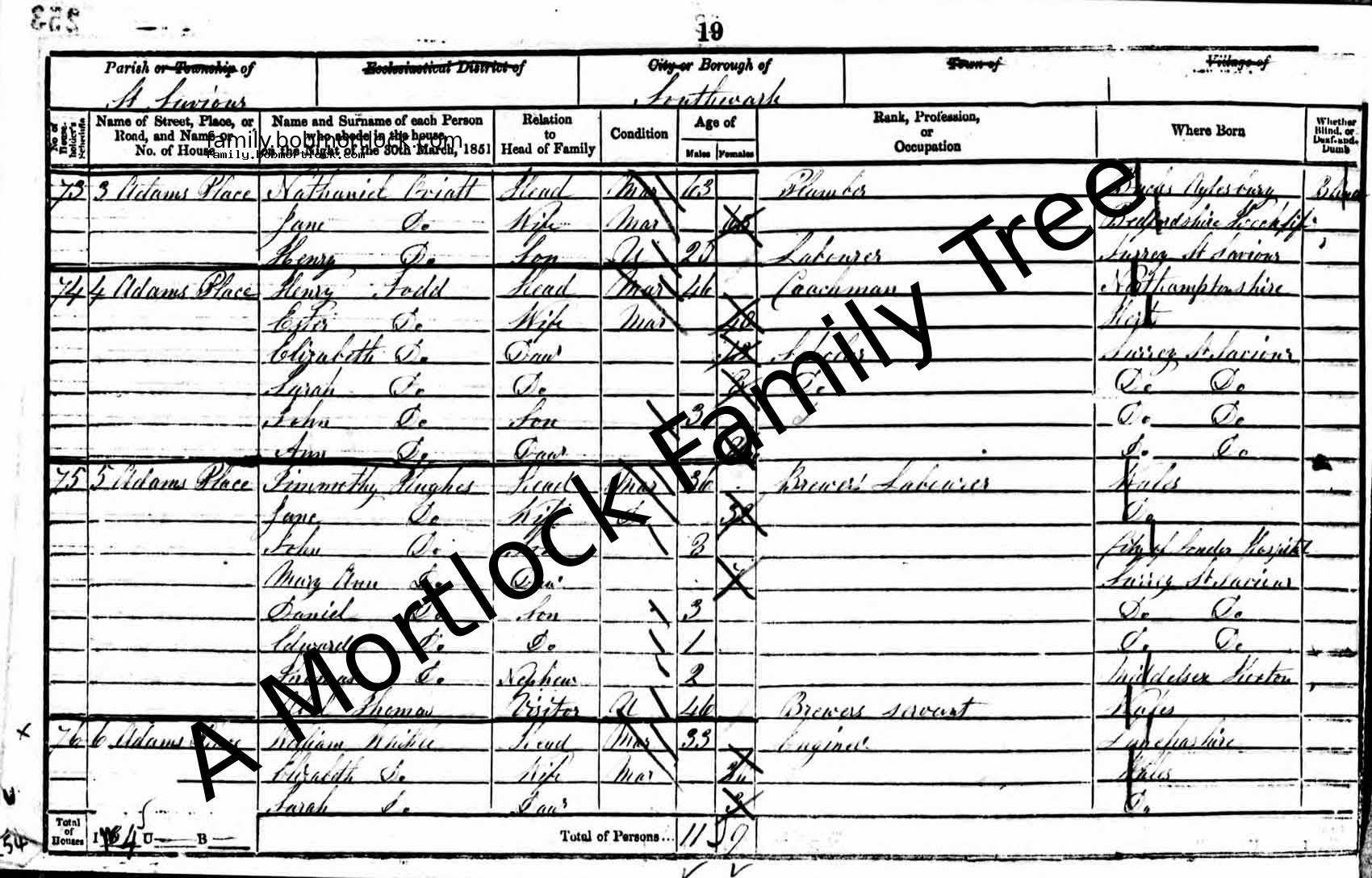 | Census | 30 March 1851 (Age 19 months) Southwark, S London, England Address: 5 Adams Place