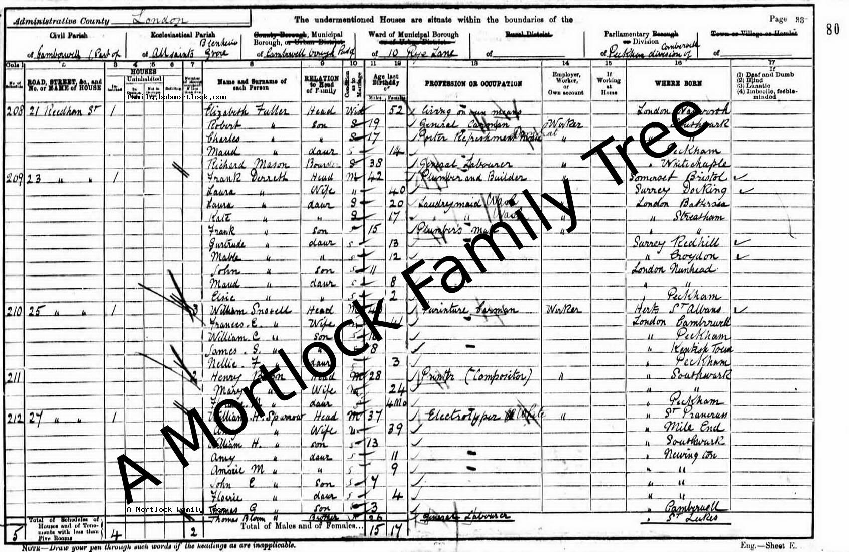 | Census | 31 March 1901 (Age 16) Peckham, SE London, England Address: 23 Reedham Street