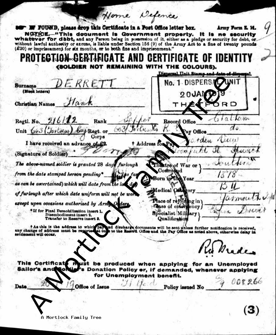 | Military Service | Type: Discharged 20 January 1919 (Age 34) Thetford, Norfolk, England |