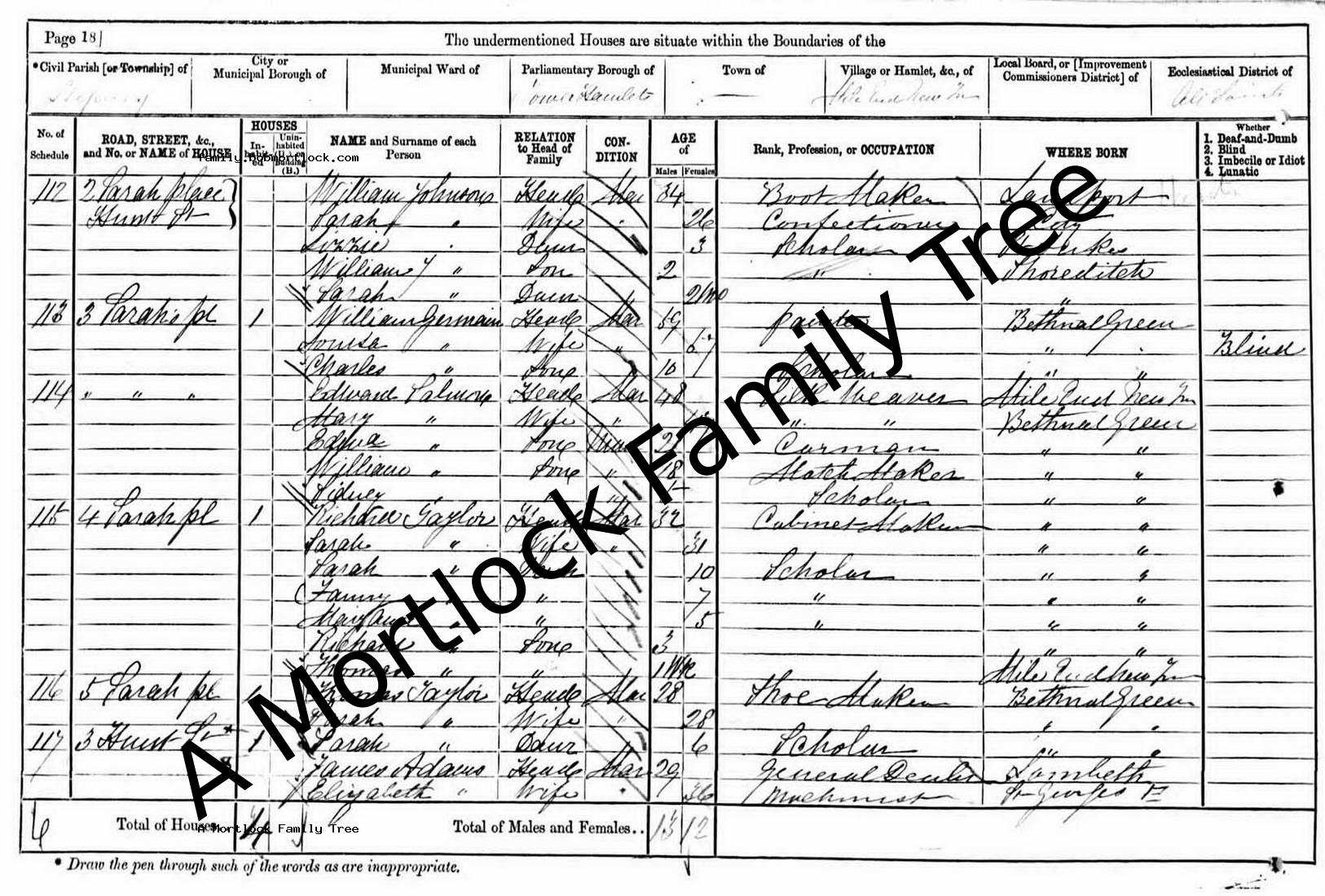 | Census | 2 April 1871 (Age 46) Mile End New Town, E London, England Address: 3 Sarahs Place