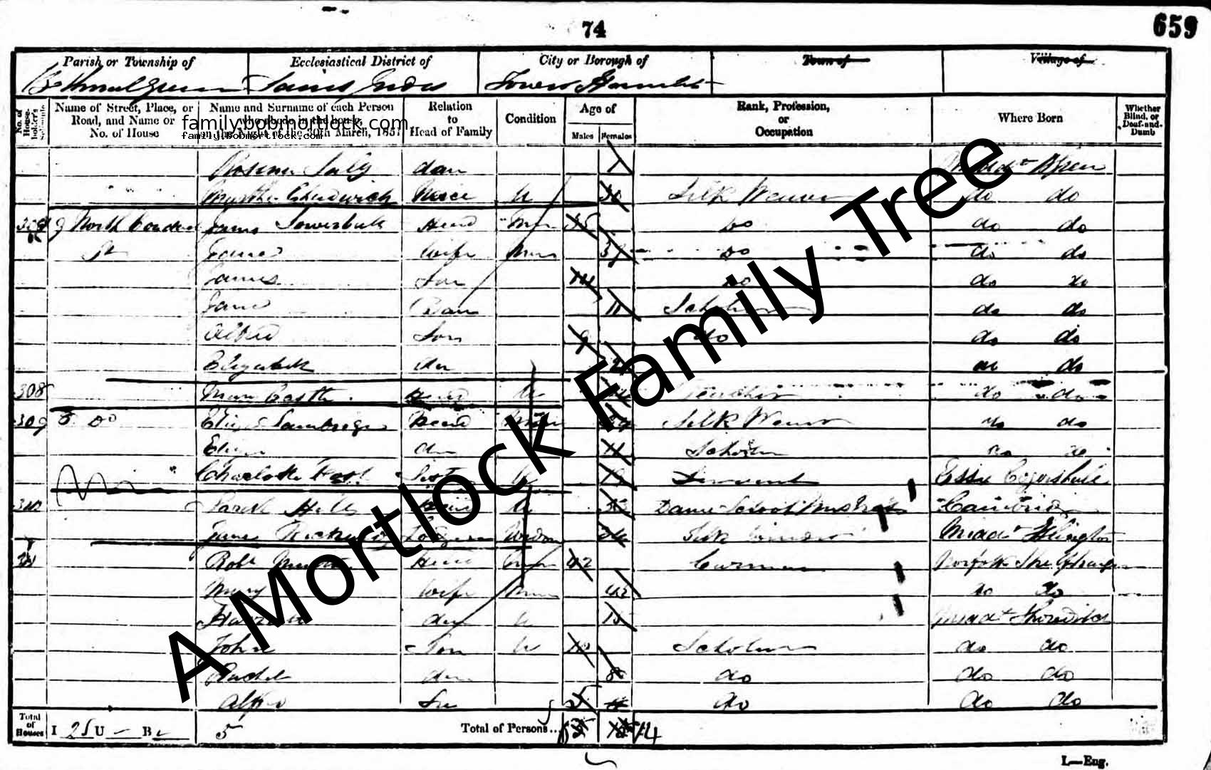| Census | 30 March 1851 (Age 19) Bethnal Green, E London, England |