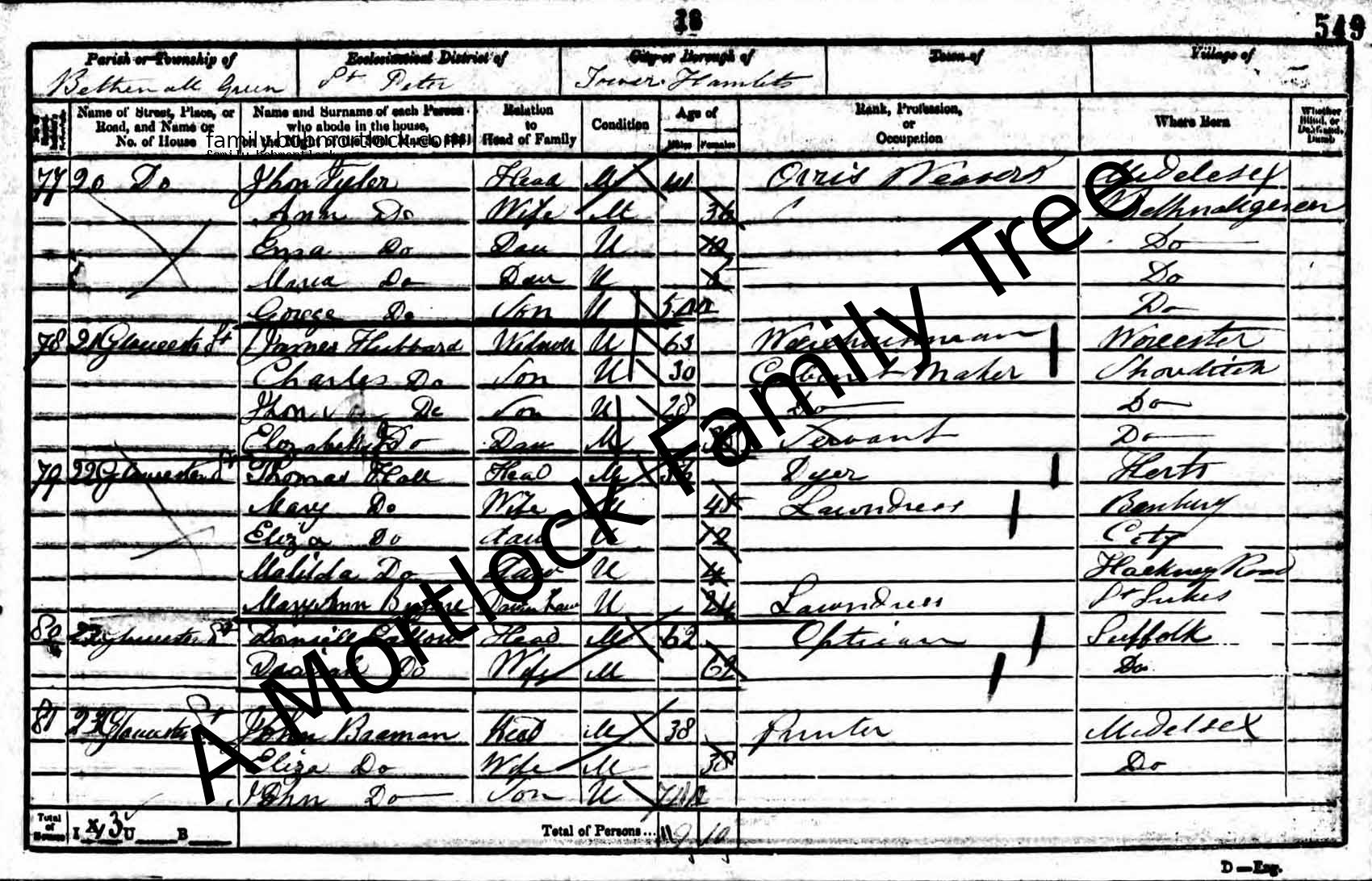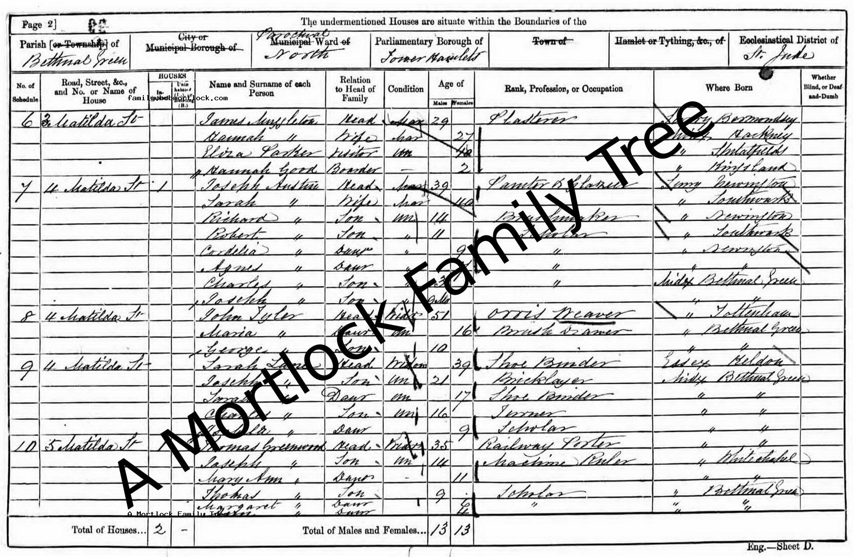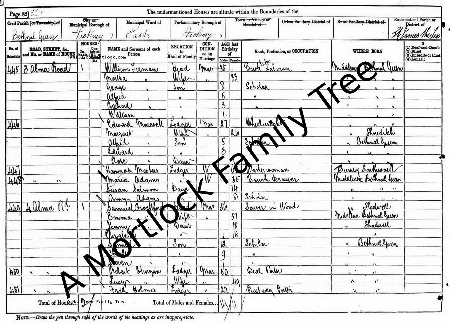 | Census | 3 April 1881 (Age 36) Bethnal Green, E London, England Address: 3 Alma Road