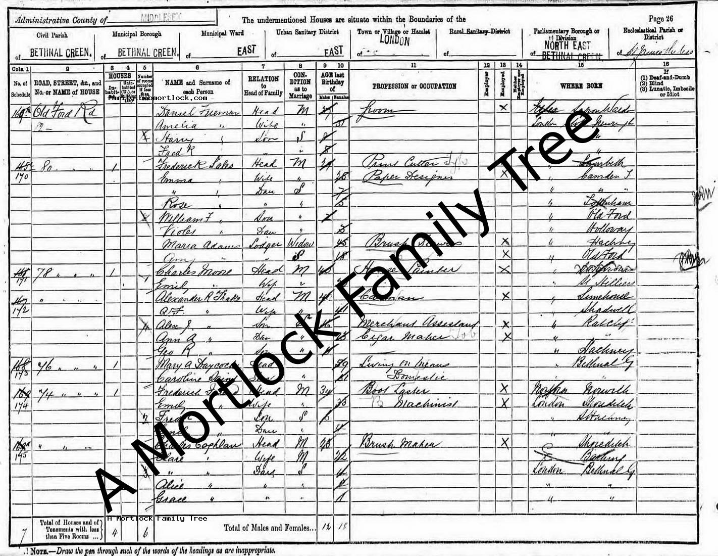 | Census | 5 April 1891 (Age 46) Bethnal Green, E London, England Address: 80 Old Ford road