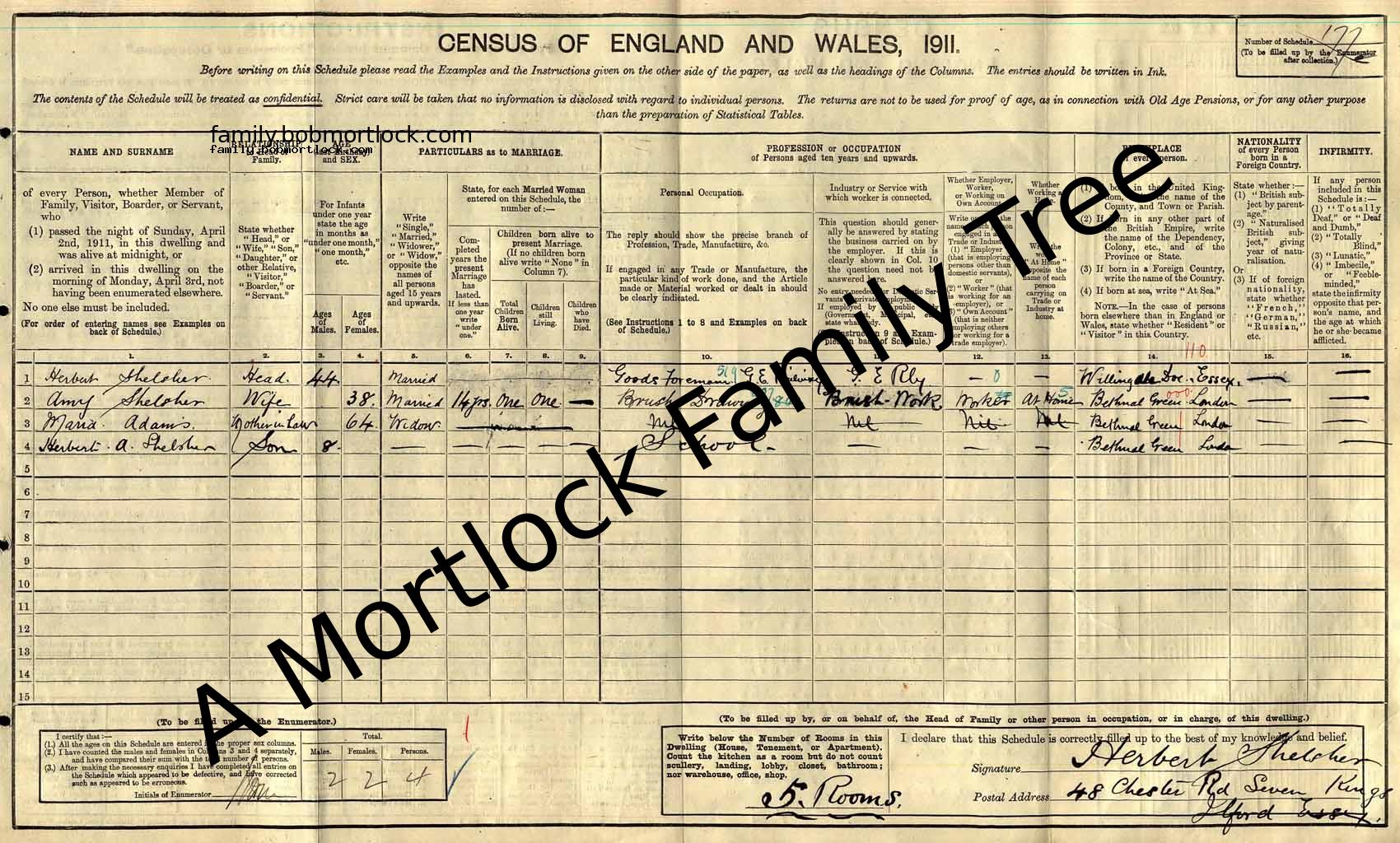 | Census | 2 April 1911 (Age 66) Ilford, Essex, England Address: 48 Chester Road, Seven Kings