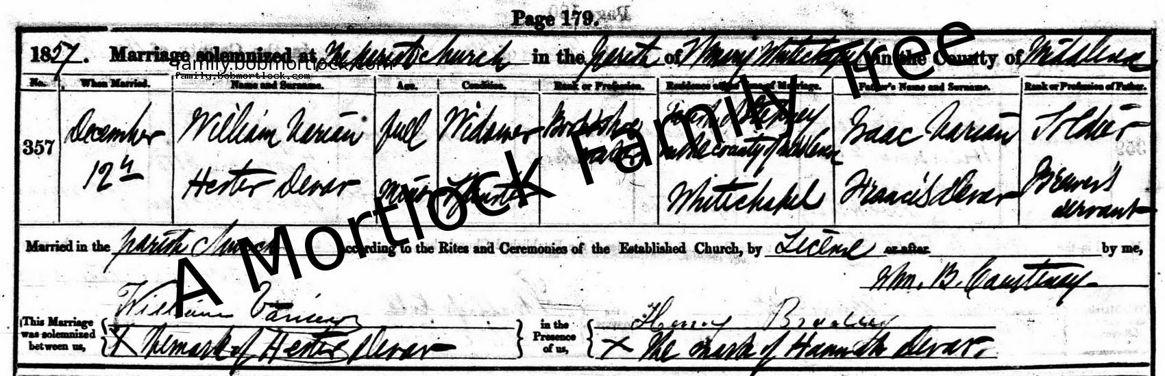 Religious Marriage: 12 December 1857 — Whitechapel, E London, England |