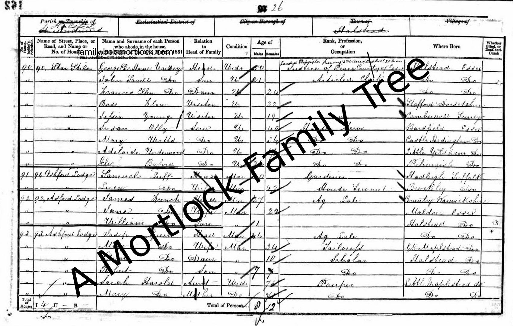 | Census | 30 March 1851 (Age 14 months) Halstead, Essex, England Address: 92 Ashford Lodge