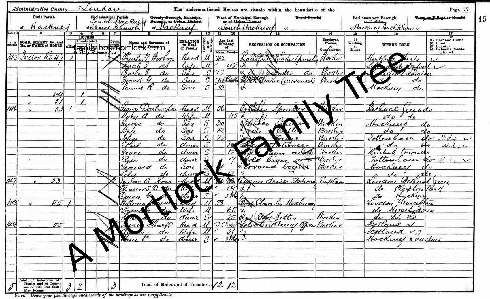 | Census | 5 April 1891 (Age 32) Hackney, E London, England Address: 49 Tudor Road