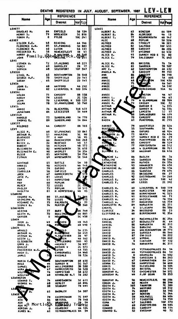 | Death of a Sister | 1944 (Age 61) Hackney, E London, England
