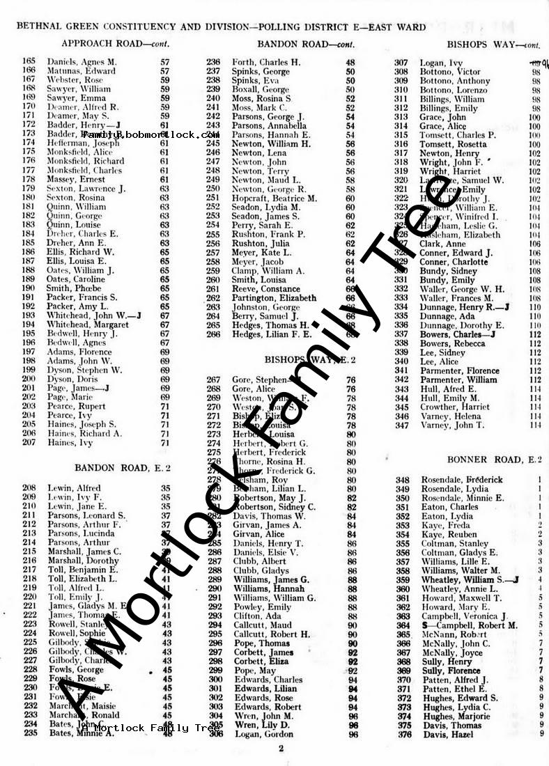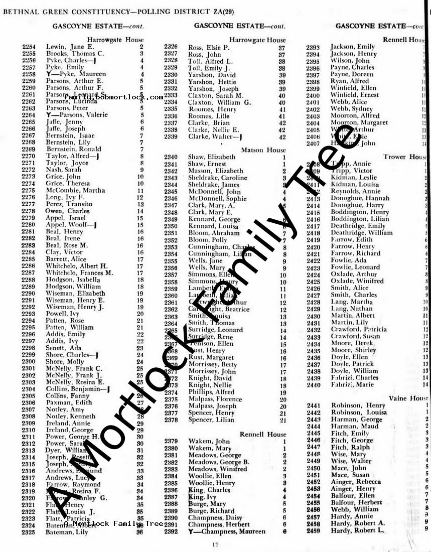 | Residence | 1960 (Age 77) Bethnal Green, E London, England Address: 2 Harrowgate House, Gascoyne Estate |