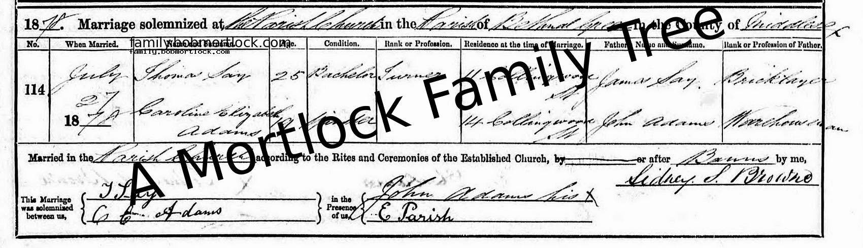 | Marriage of a Sister | Elizabeth SAY - View family 29 March 1874 (Age 22) Hackney, E London, England