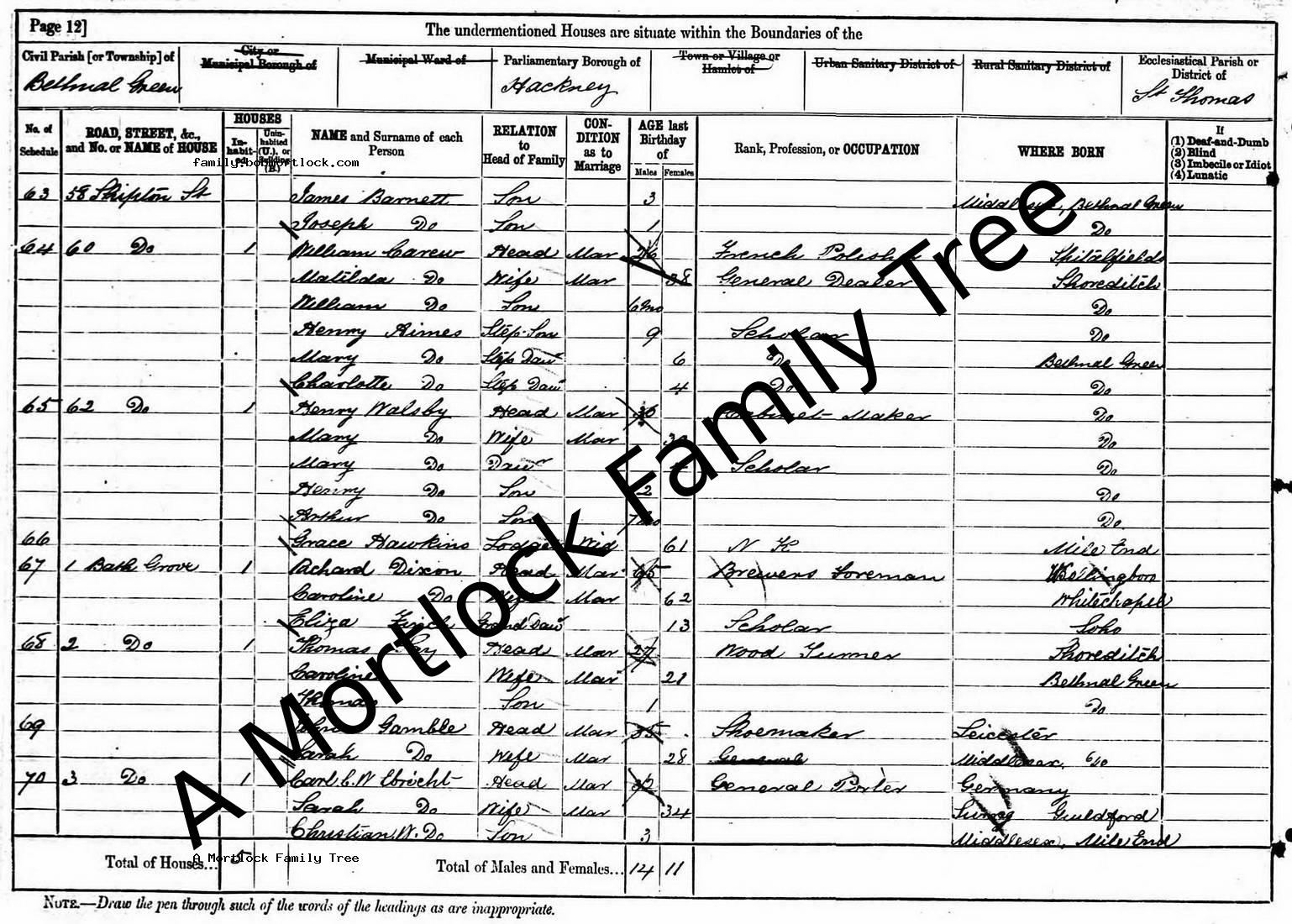 | Census | 3 April 1881 (Age 29) Bethnal Green, E London, England Address: 2 Bath Grove
