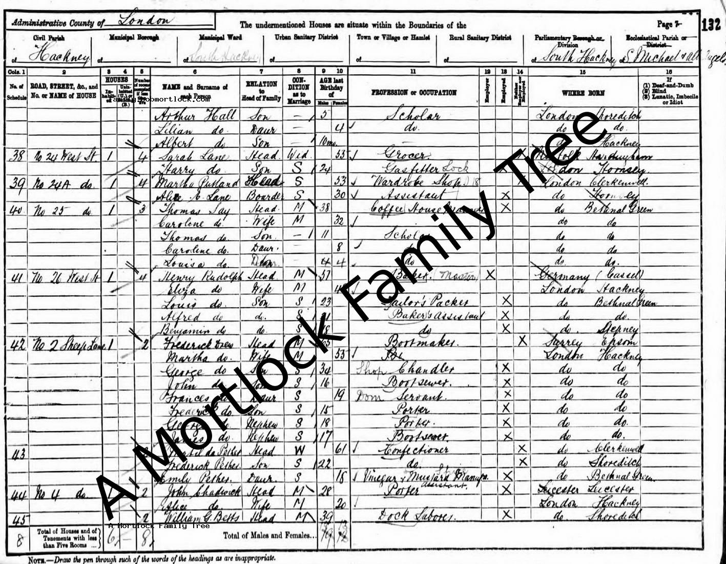 | Census | 5 April 1891 (Age 39) Hackney, E London, England Address: 25 West Street