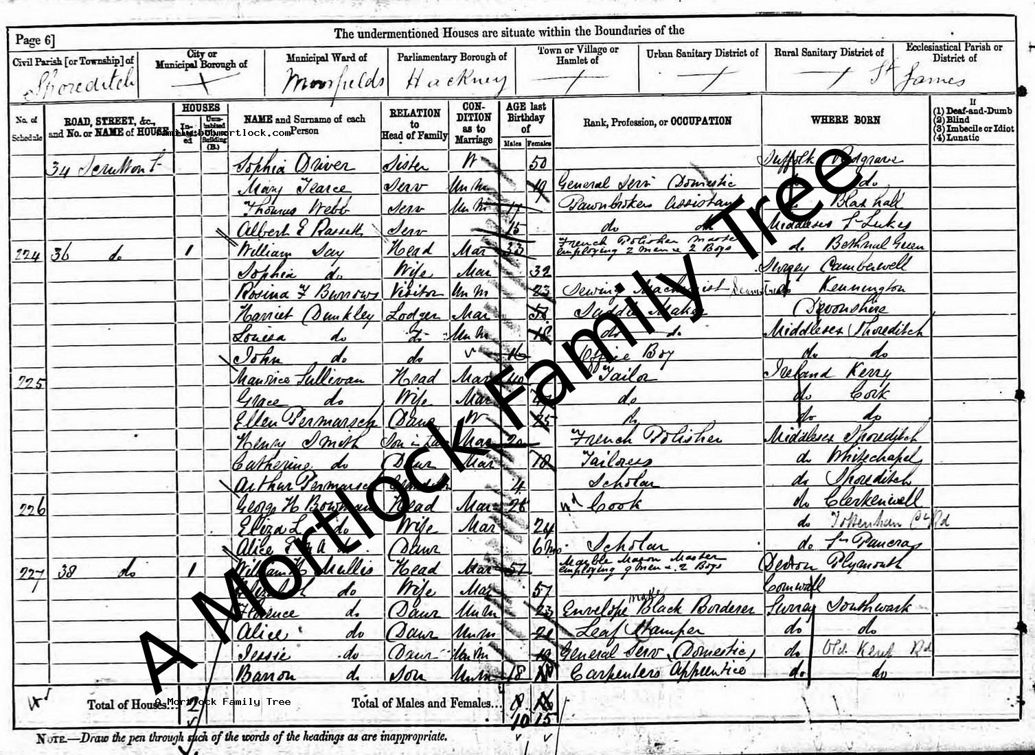 | Census | 5 April 1891 (Age 44) Shoreditch, E London, England Address: 42 Scrutton Street