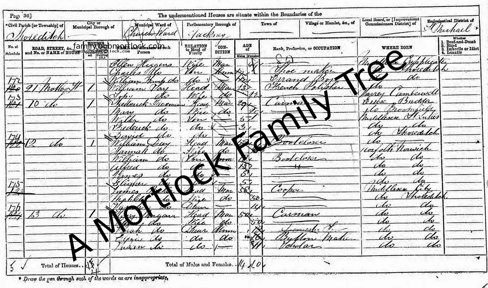 | Census | 3 April 1881 (Age 34) Shoreditch, E London, England Address: 36 Scrutton Street