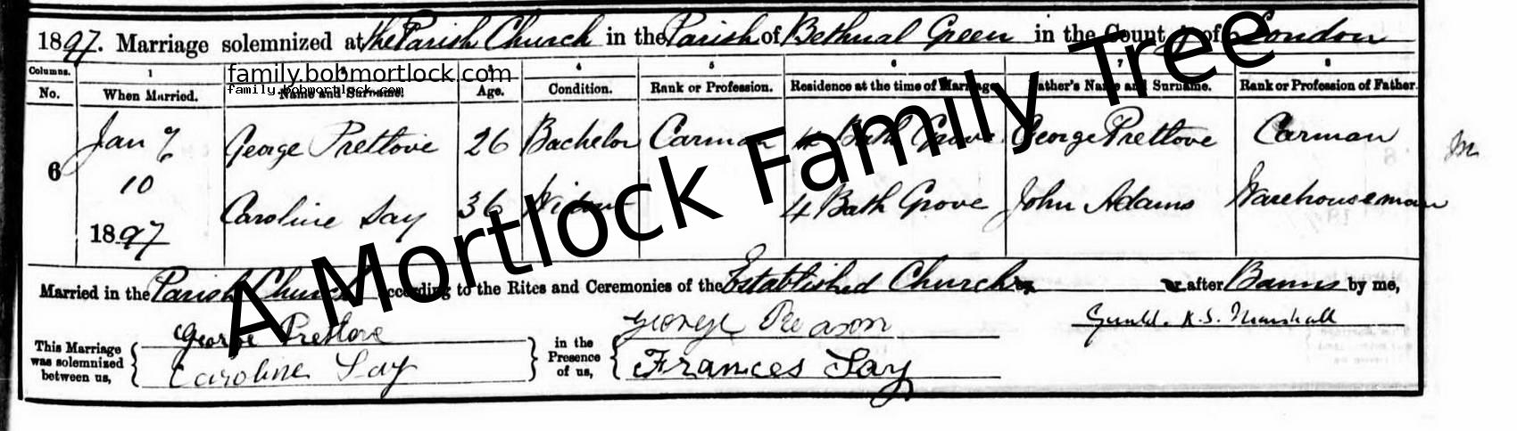 | Religious Marriage | George PRITLOVE - View family 10 January 1897 (Age 38) Bethnal Green, E London, England Address: St Matthew