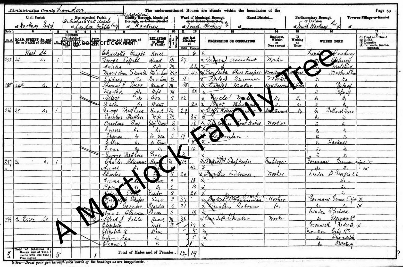| Census | 31 March 1901 (Age 42) Hackney, E London, England Address: 25 West Street