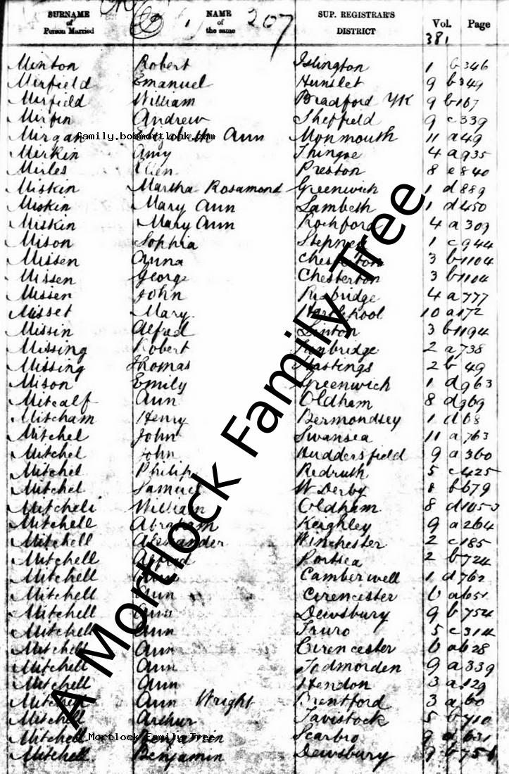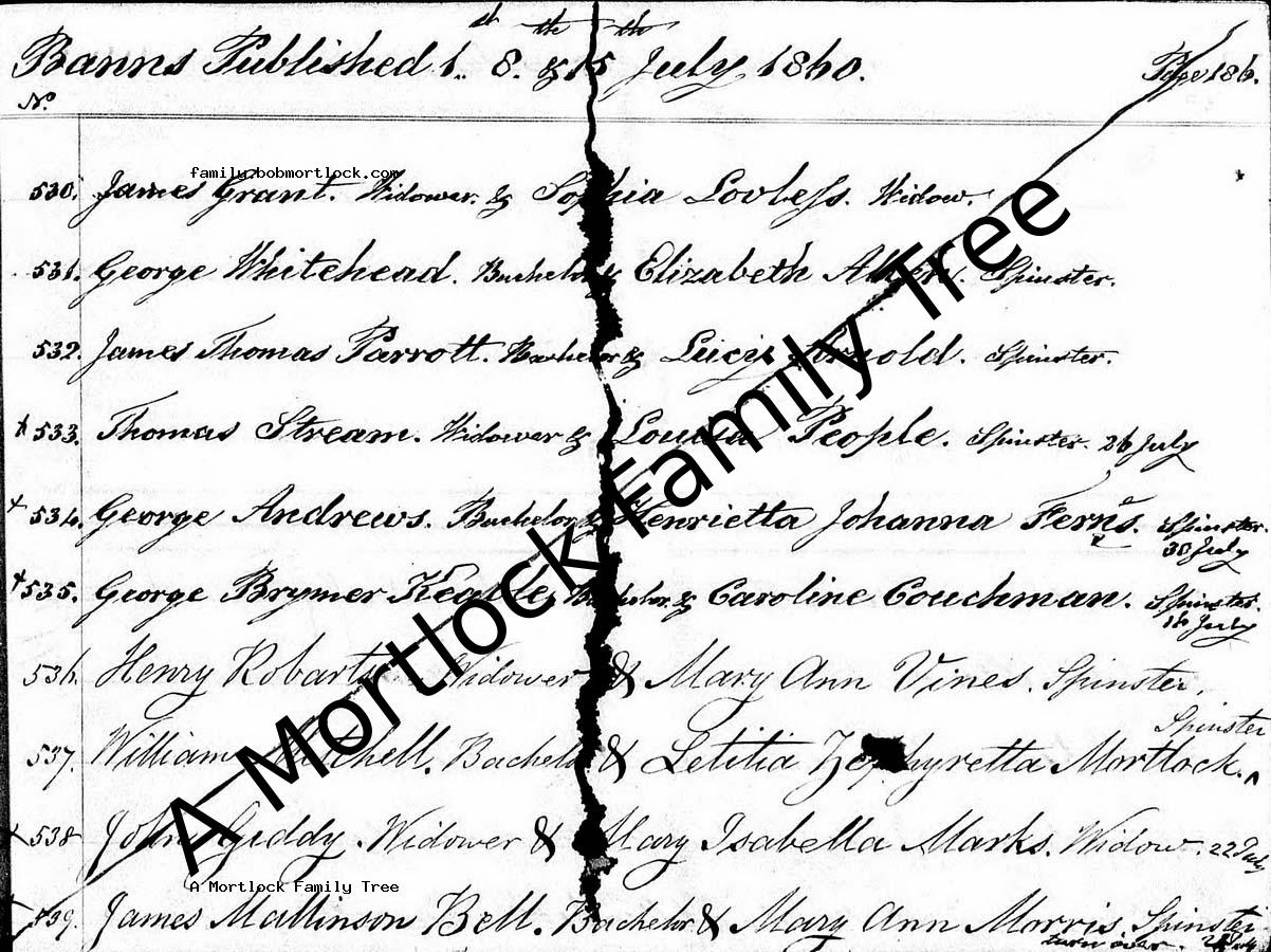| Marriage Banns | William MITCHELL - View family 15 July 1860 (Age 32) Lambeth, S London, England Address: St Mary |