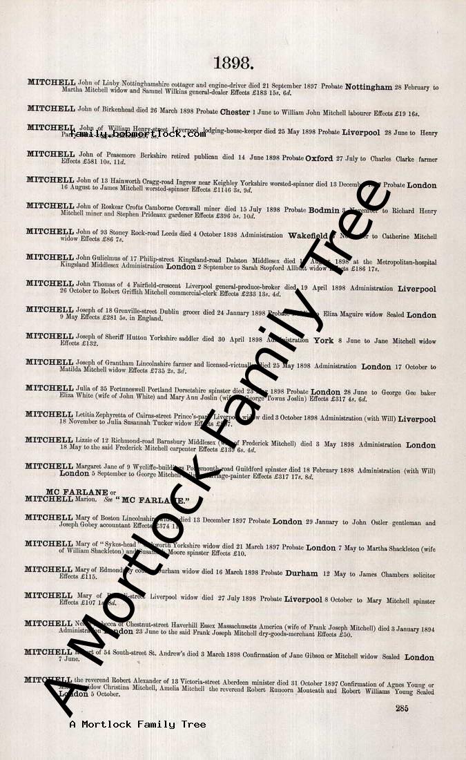 | Probate | 18 November 1898 (46 days after death) Liverpool, Lancashire, England |