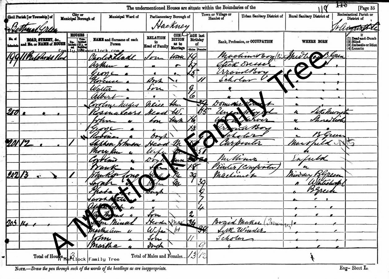 | Census | 3 April 1881 (Age 10) Bethnal Green, E London, England Address: 13 Pritchard Rd