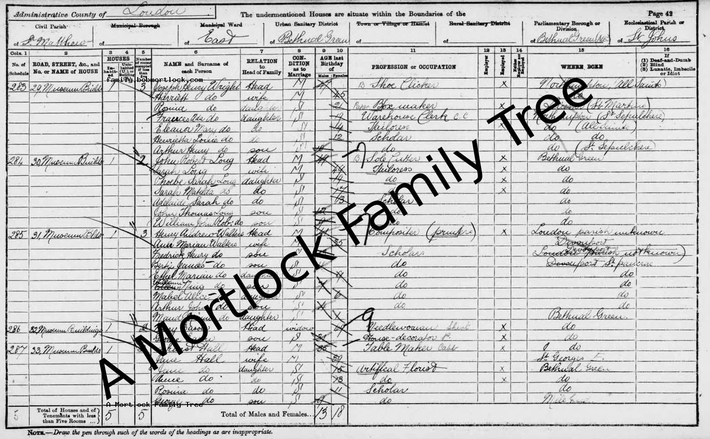 | Census | 5 April 1891 (Age 20) Bethnal Green, E London, England Address: 30 Museum Buildings