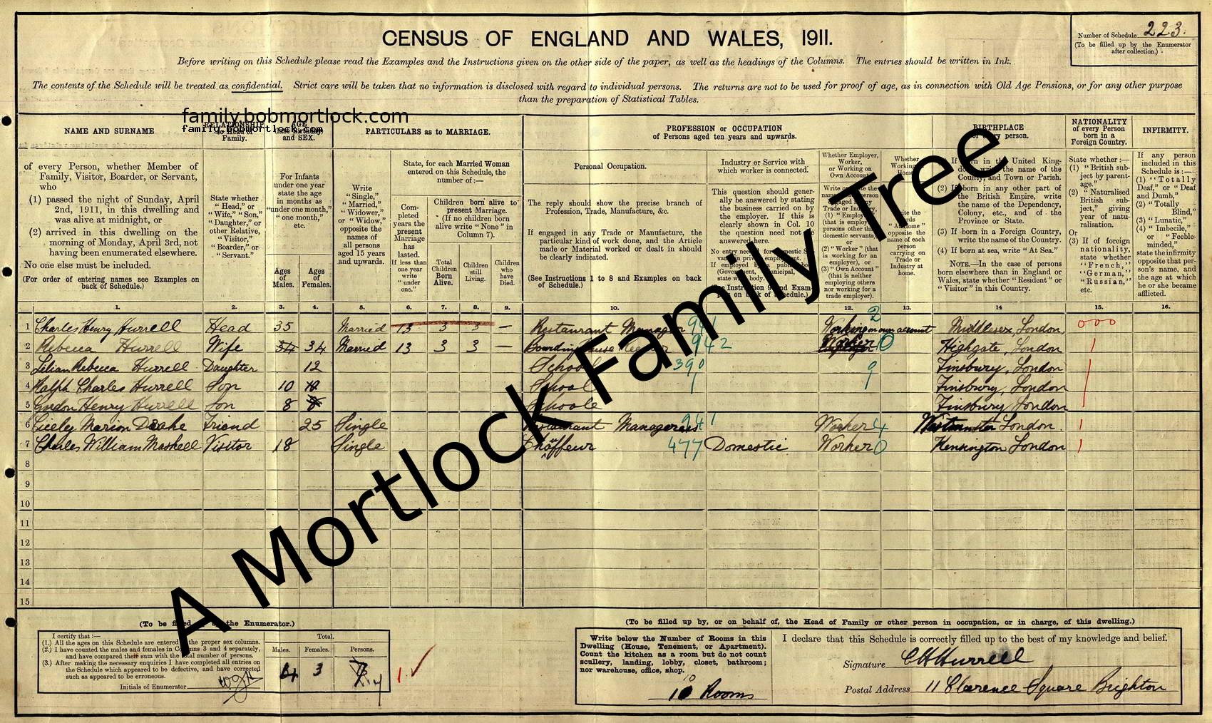 | Census | 2 April 1911 (Age 12) Brighton, Sussex, England Address: 11 Clarence Square
