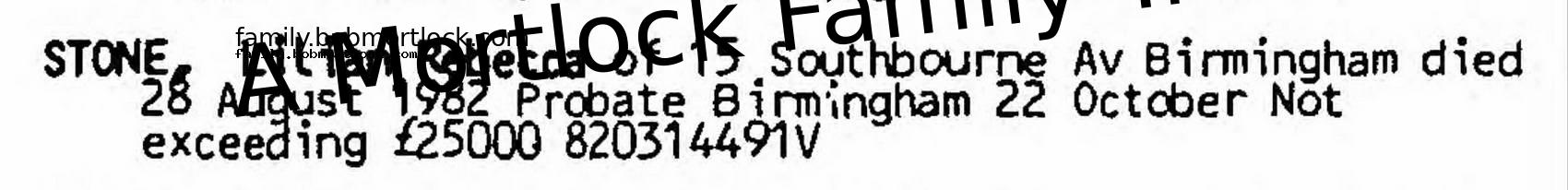 | Death | 28 August 1982 (Age 83) Birmingham, Warwickshire, England Address: 15 Southbourne Avenue |