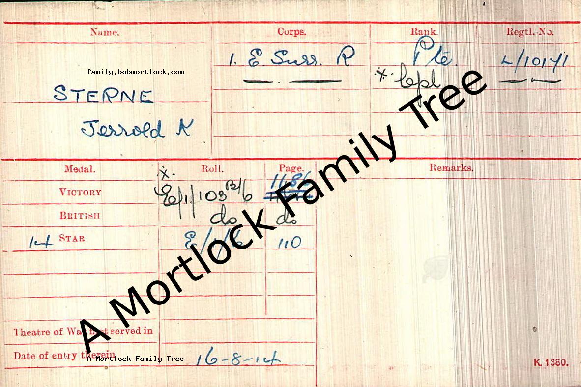 | Military | Type: WW1 Medals 16 August 1914 (Age 20)Agency: East Surrey Regiment |