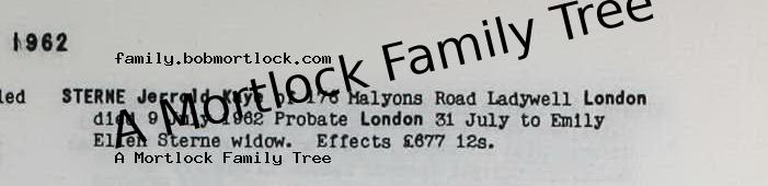 | Death | 9 July 1962 (Age 68) Lewisham, SE London, England Address: 176 Malyons Road |