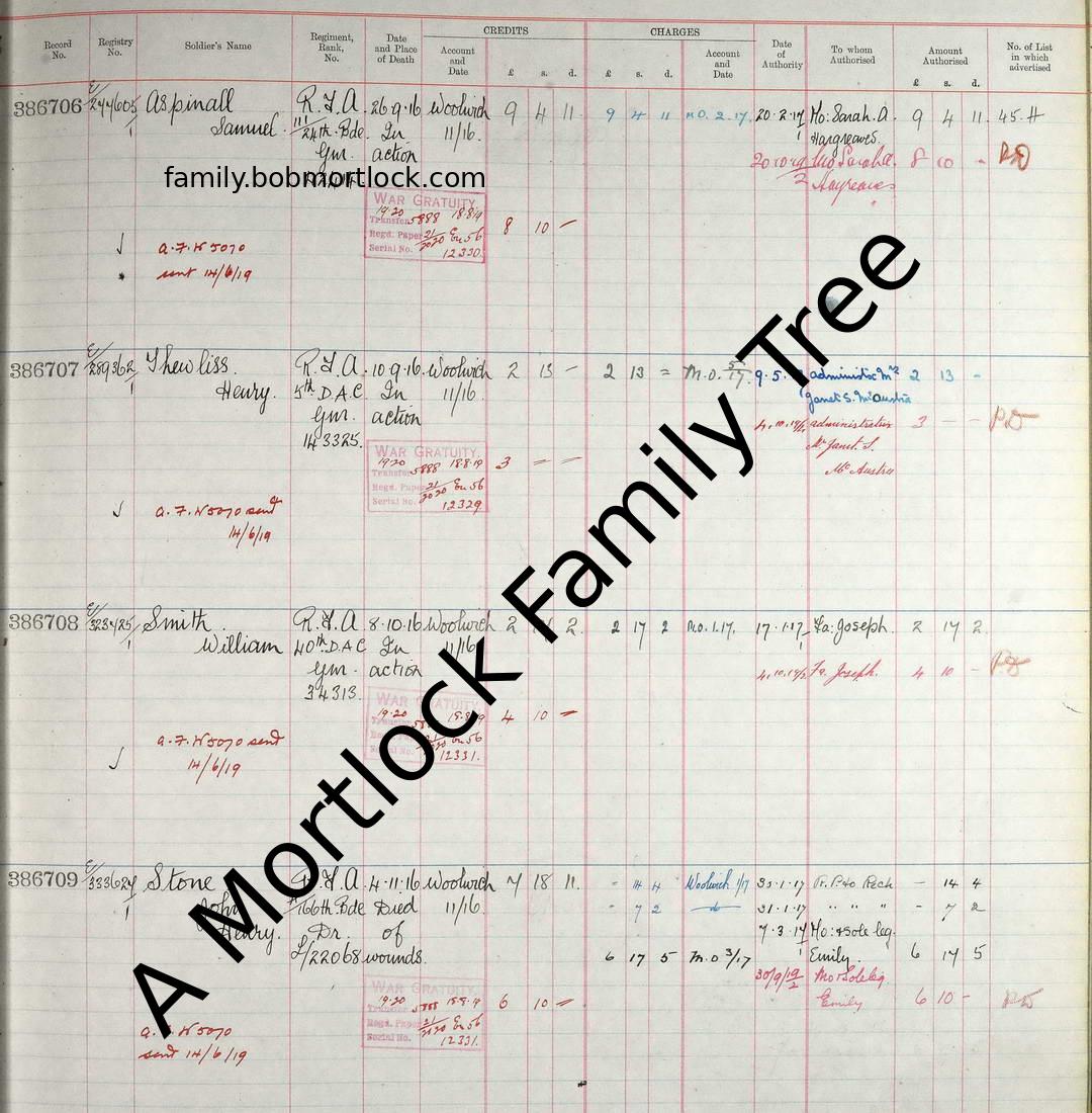| Military | Type: Soldiers Effects 18 August 1919 (2 years after death) Woolwich, SE London, England |