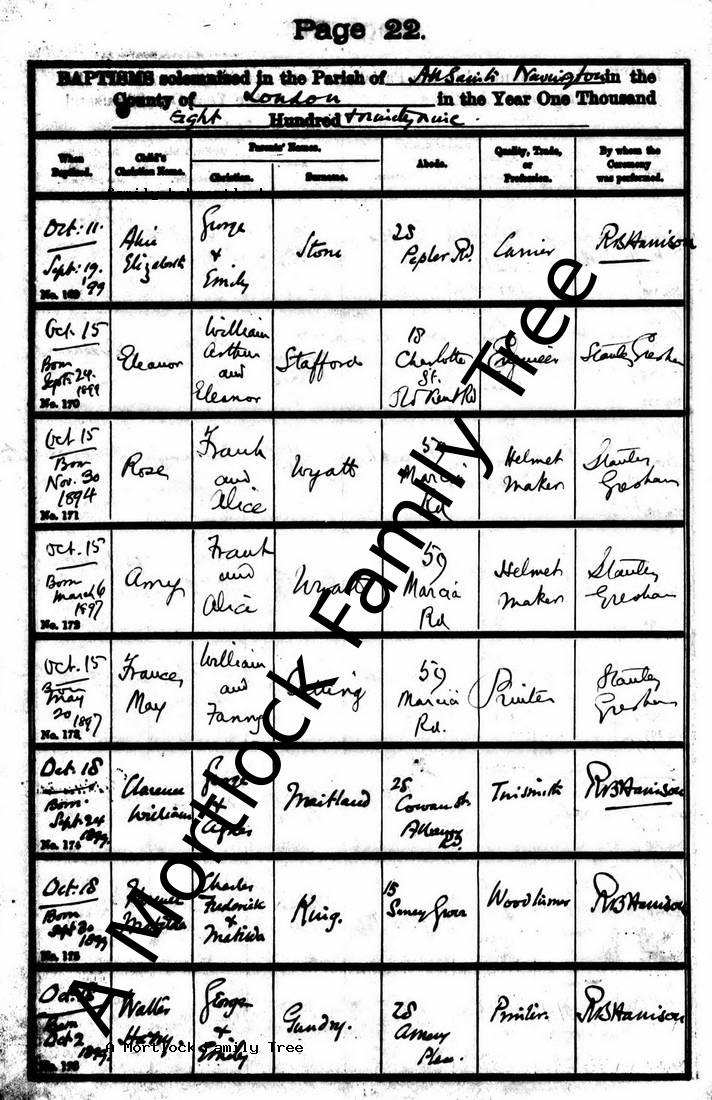 | Baptism | 11 October 1899 (Age 22 days) Southwark, S London, England Address: All Saints |
