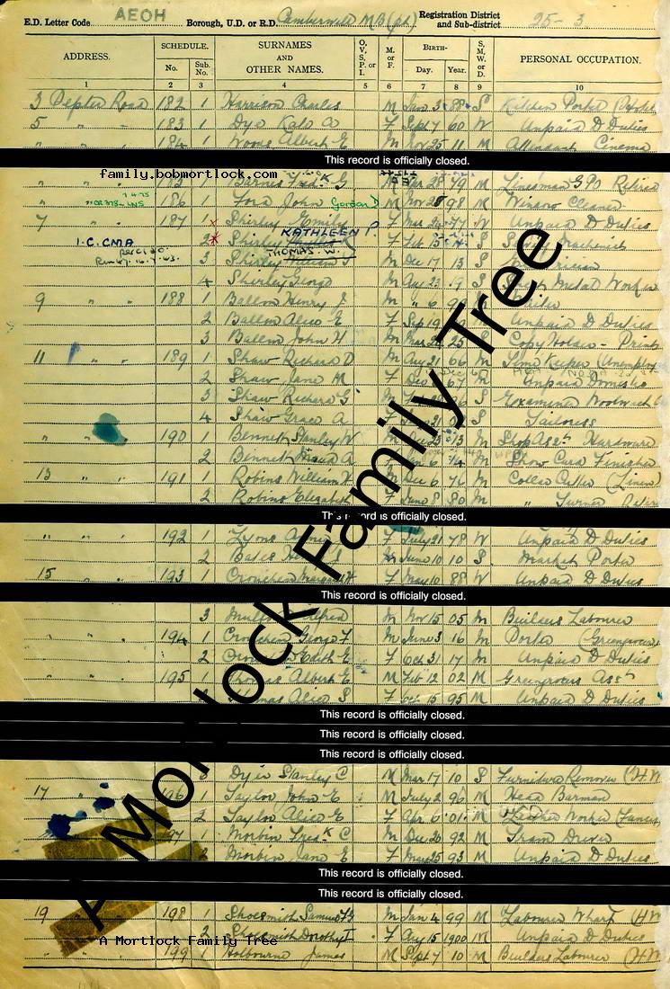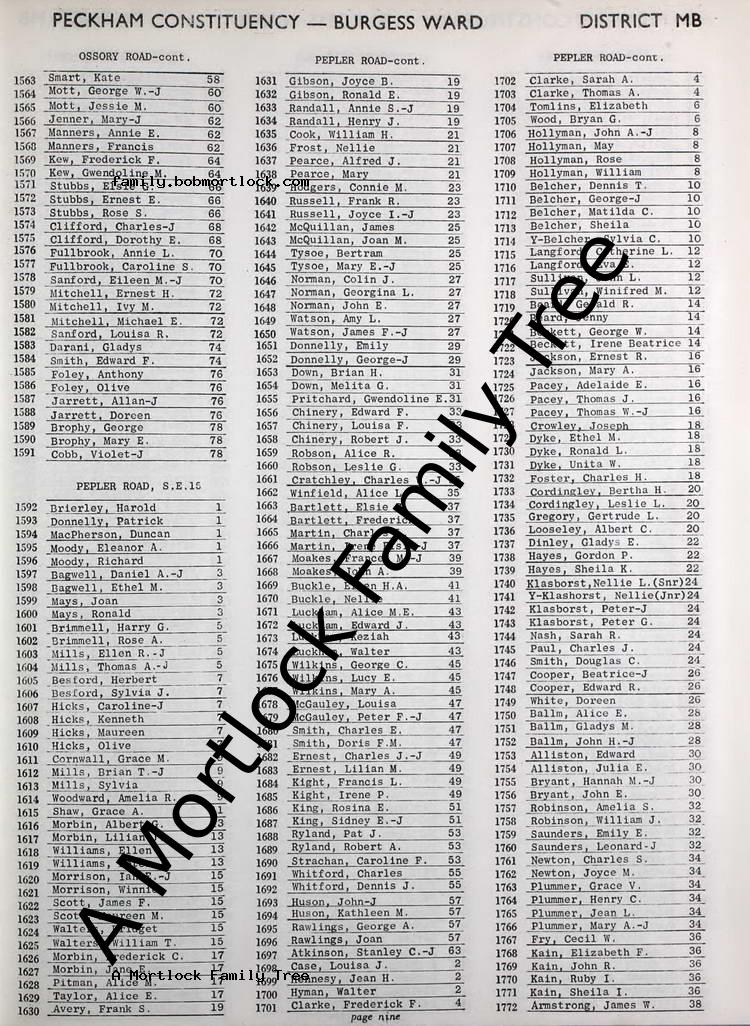 | Census | 29 September 1939 (Age 40) Camberwell, S London, England Address: 9 Pepler Road |