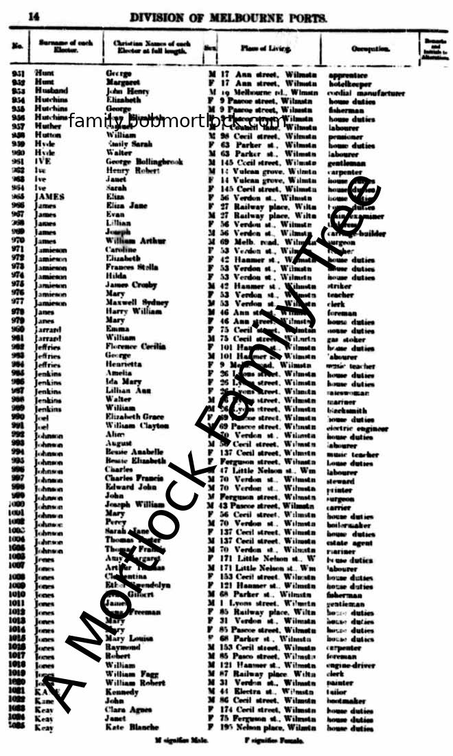 | Residence | 1903 (Age 66) Williamstown, Victoria, Australia Address: 145 Cecil Street |