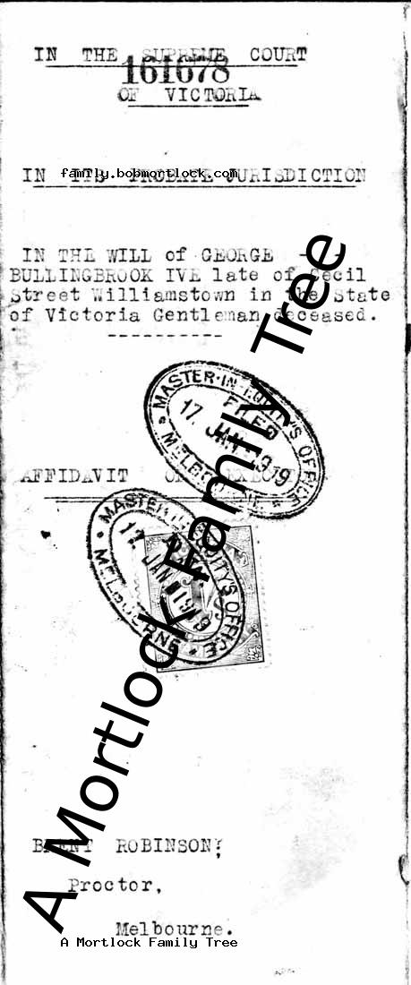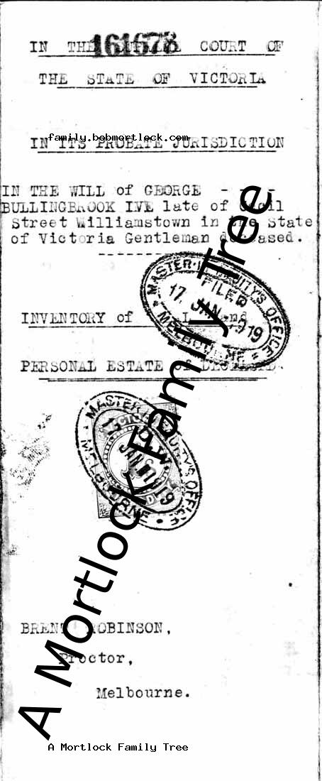 | Probate | 17 January 1919 (12 months after death) Victoria, Australia |