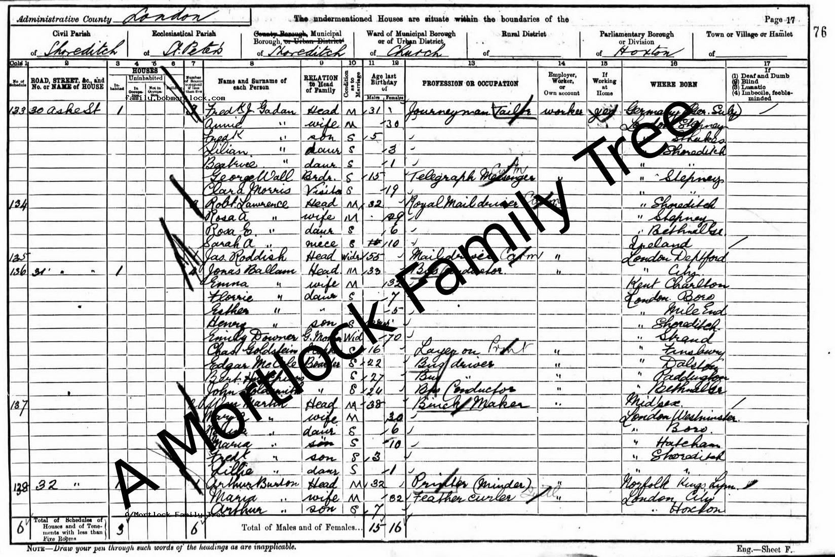 | Census | 31 March 1901 (Age 19 months) Shoreditch, E London, England |
