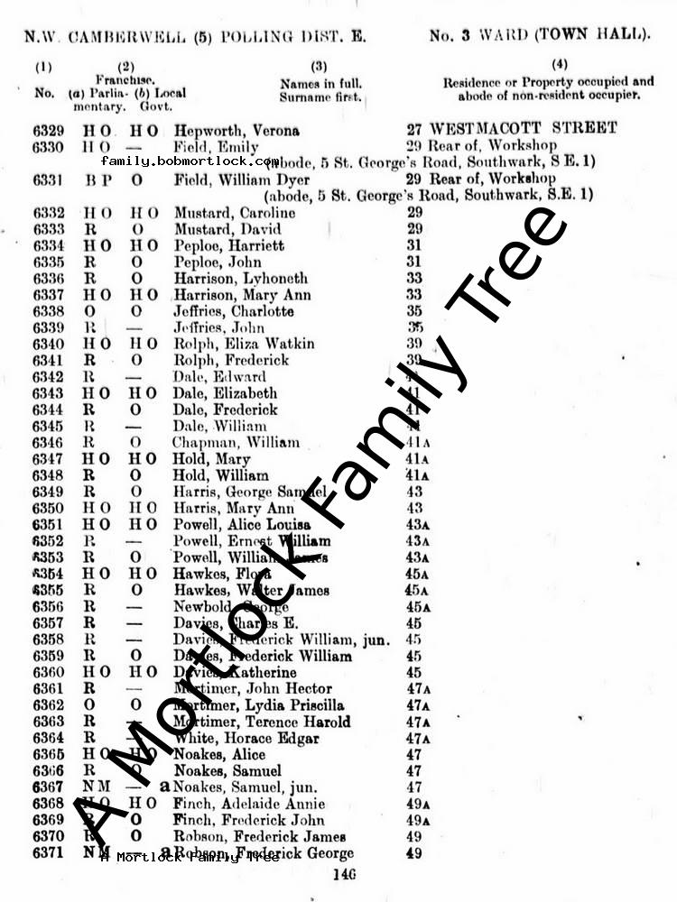 | Residence | 1921 (Age 48) Camberwell, S London, England Address: 35 Westmacott Street |