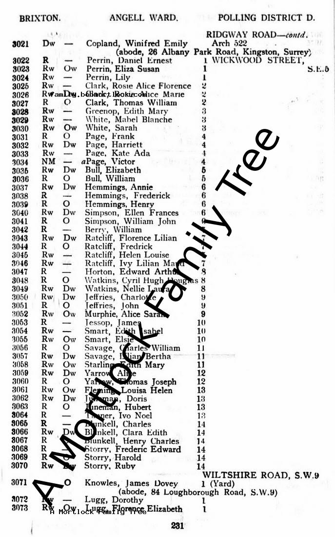 | Residence | 1930 (Age 57) Brixton, Surrey, England Address: 9 Wickwood Street |