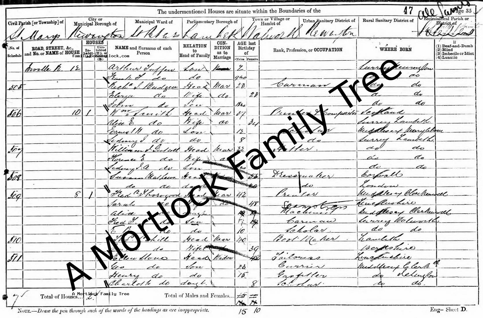 | Census | 3 April 1881 (Age 8) Walworth, S London, England Address: 8 Modle Road