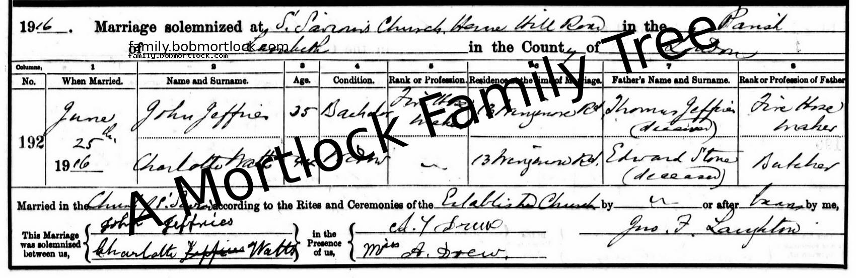 | Religious Marriage | John JEFFRIES - View family 25 June 1916 (Age 43) Lambeth, S London, England Address: St Saviour