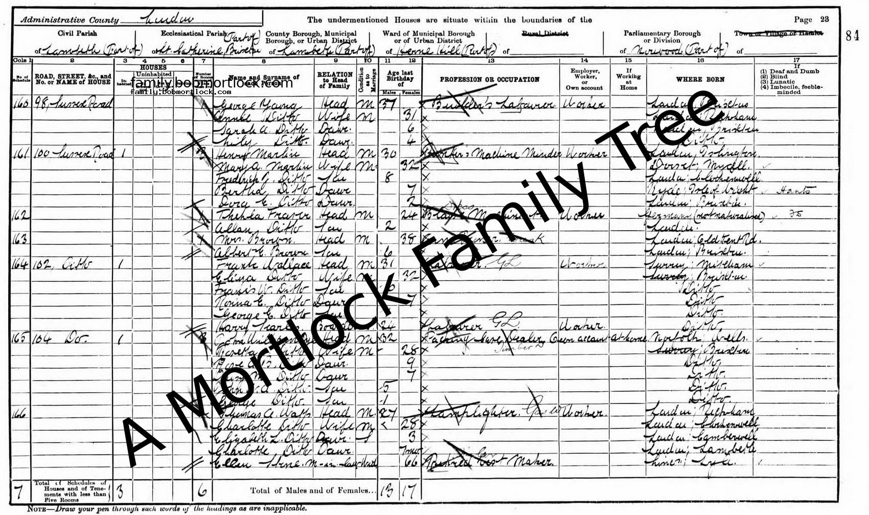| Census | 31 March 1901 (Age 28) Lambeth, S London, England Address: 104 Tunex Road