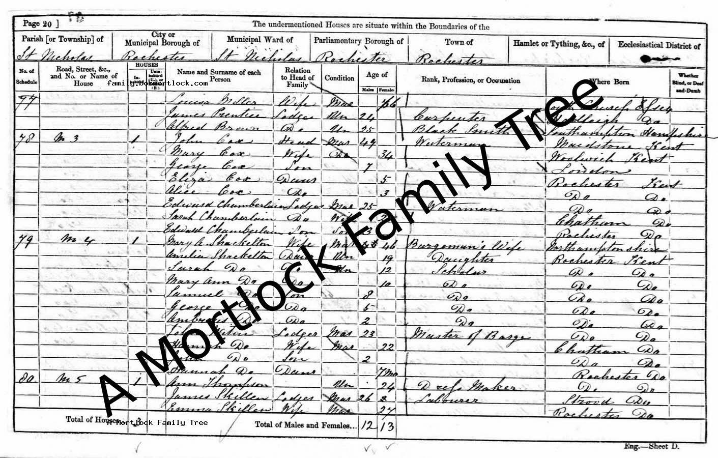 | Census | 31 March 1901 (Age 43) Rochester, Kent, England Address: 16 Burdell Terrace
