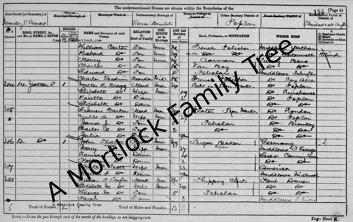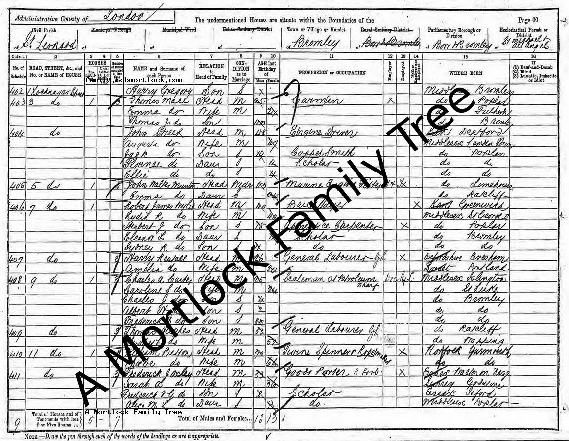 | Census | 3 April 1881 (Age 15) Bromley, E London, England Address: 16 Yattan Street