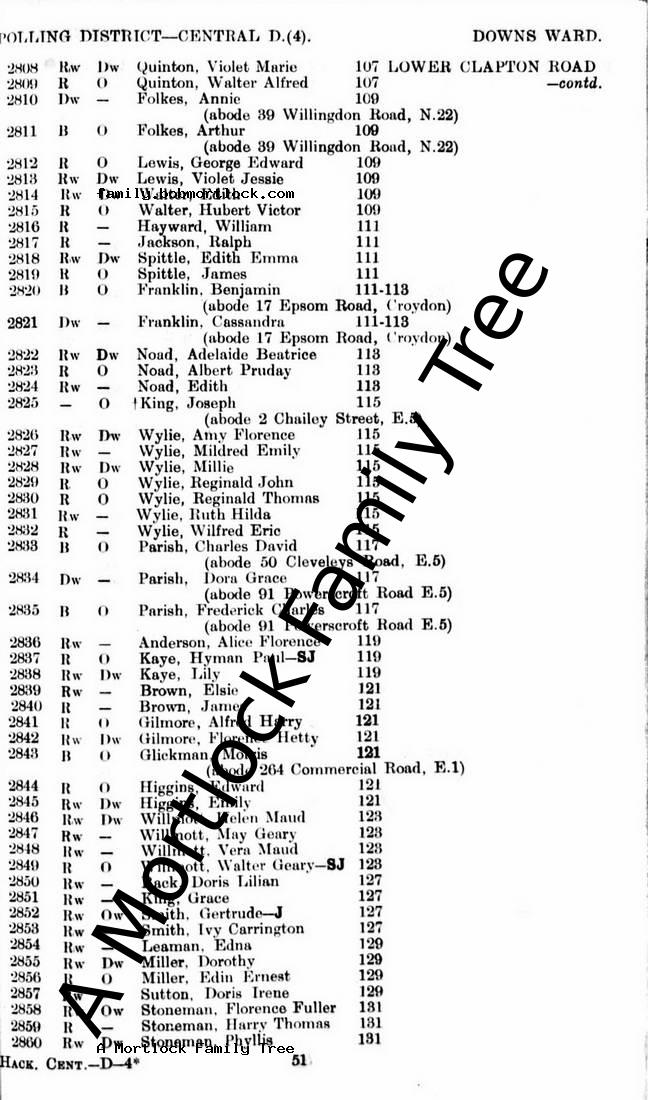 | Residence | 1932 (Age 33) Hackney, E London, England Address: 109 Lower Clapton Road |