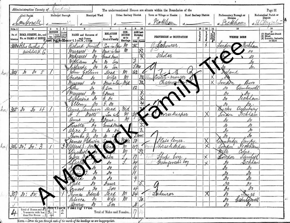 | Census | 5 April 1891 (Age 29) Peckham, SE London, England Address: 4 Blue Anchor Lane