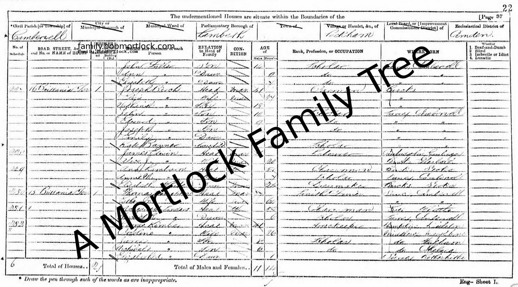 | Census | 2 April 1871 (Age 7) Peckham, SE London, England Address: 15 Britannia Terrace