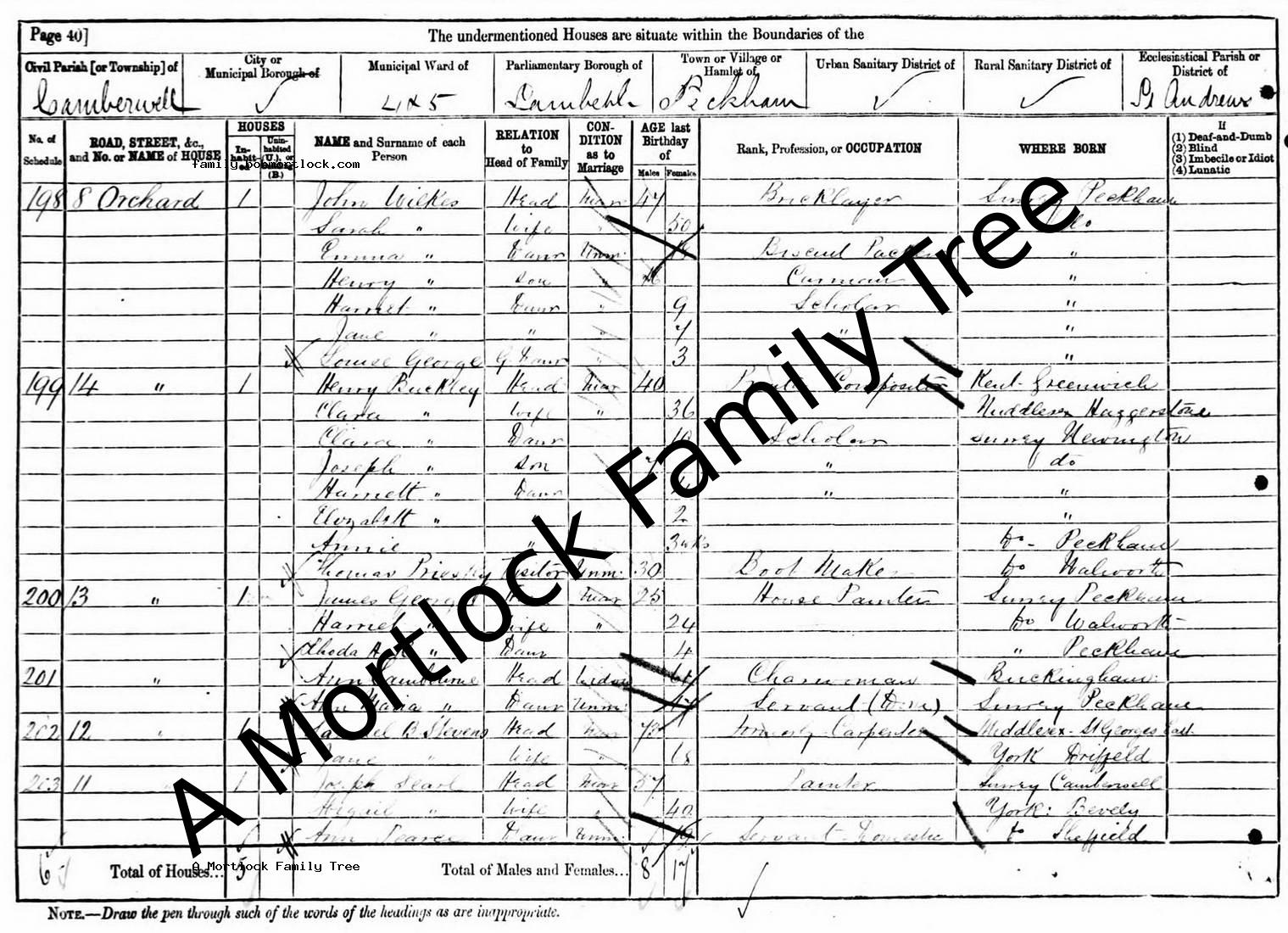 | Census | 3 April 1881 (Age 17) Peckham, SE London, England Address: 13 Orchard Road