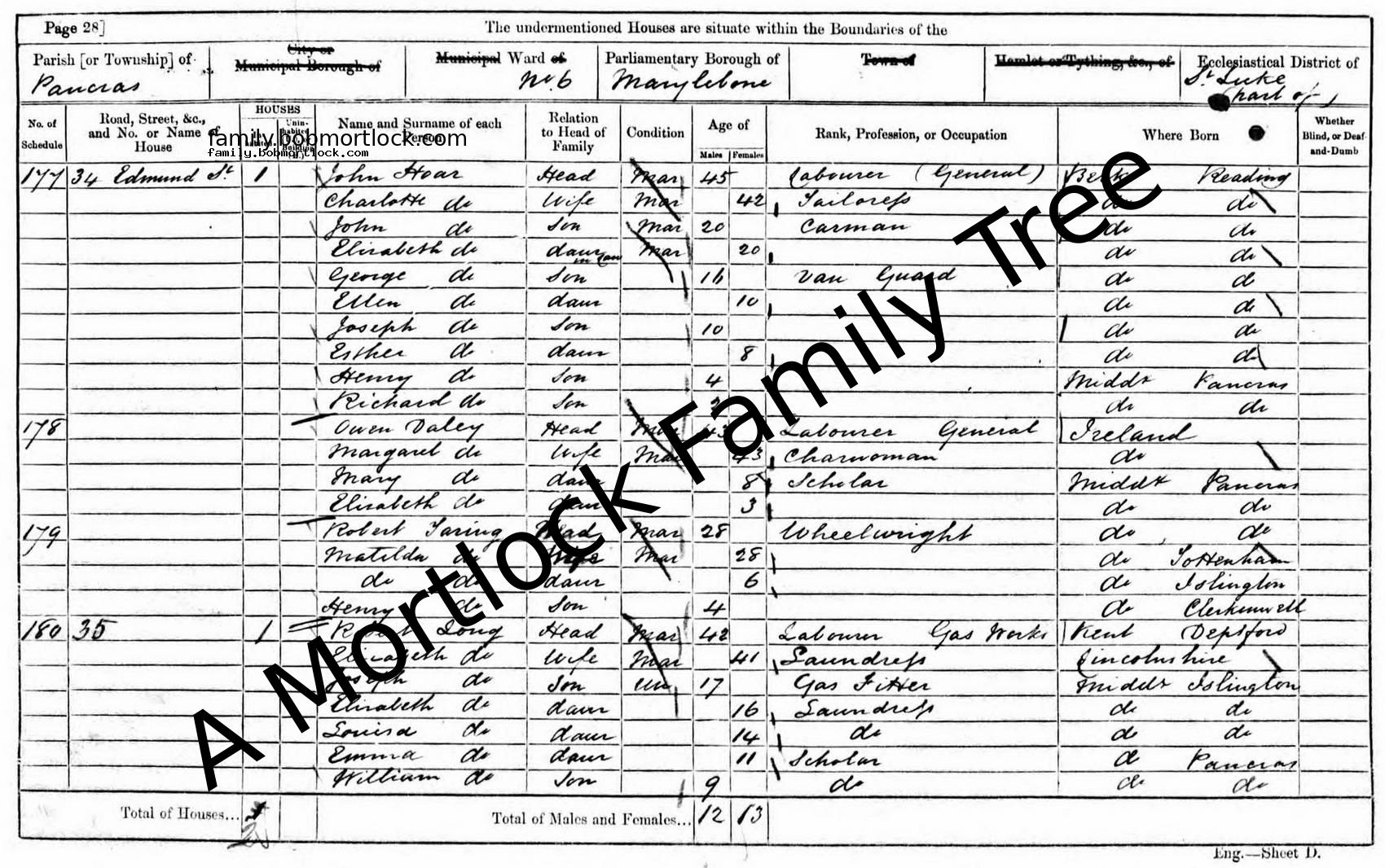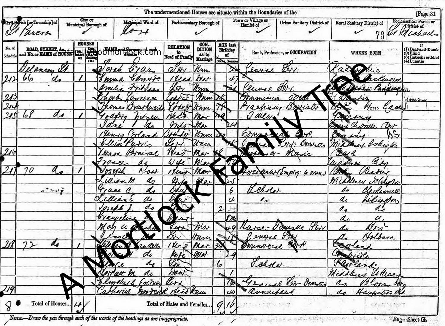 | Census | 3 April 1881 (Age 30) St Pancras, C London, England Address: 70 Delancey Street