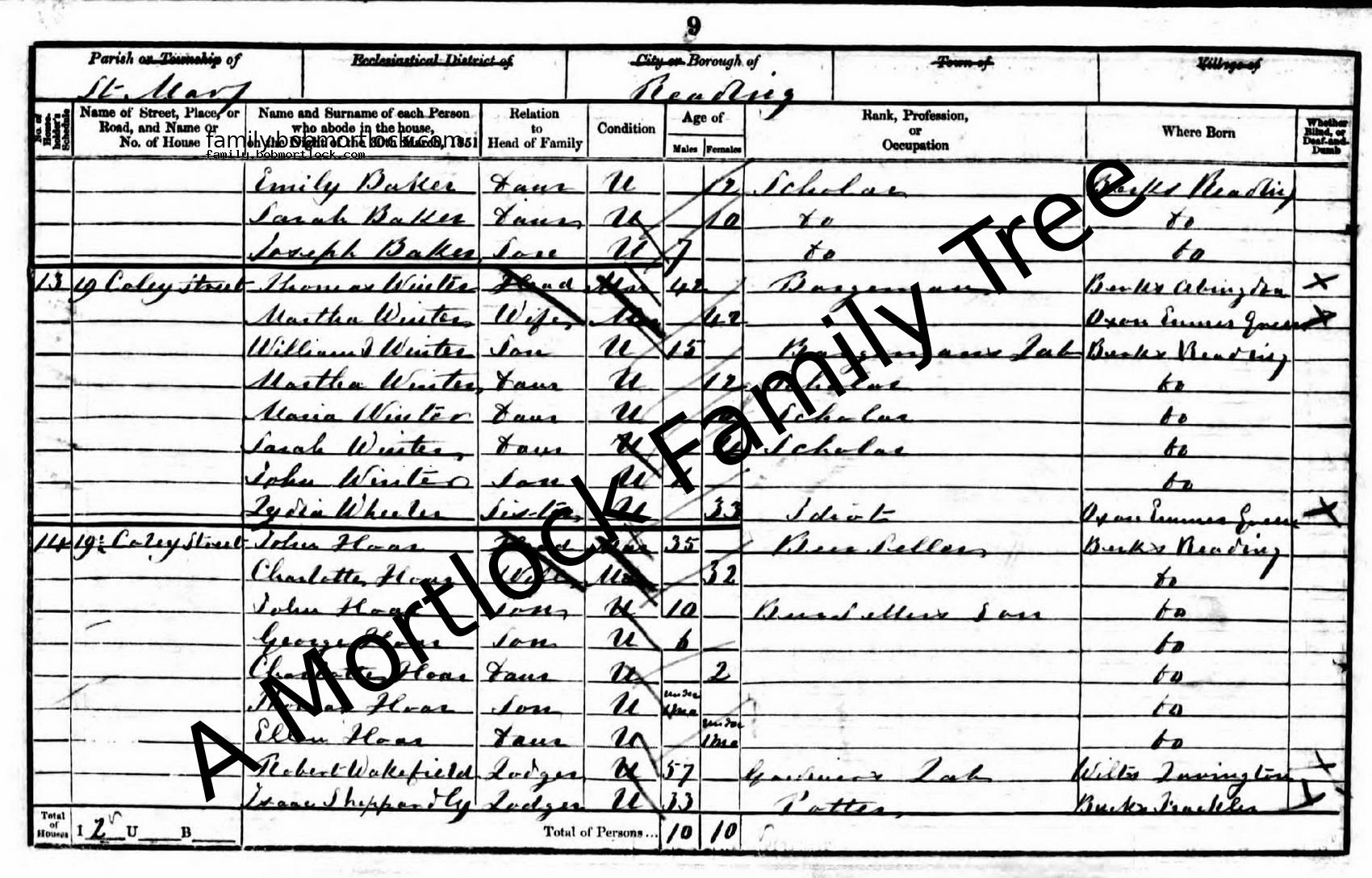 | Census | 30 March 1851 (Age 18 days) Reading, Middlesex, England |