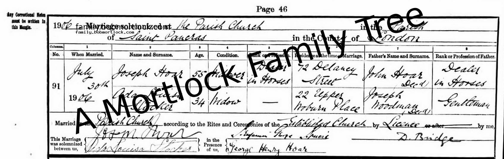 | Religious Marriage | Ada Louisa WOODMAN - View family 30 July 1906 (Age 55) St Pancras, C London, England Address: The Parish Church