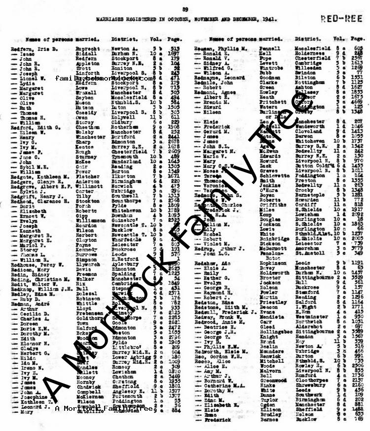 | Marriage | William Joseph Henry REDKNAP - View family 1941 (Age 51) Stepney, E London, England |